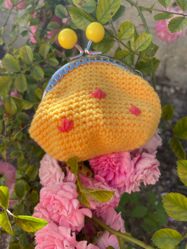 Otro monedero para el verano! Esta vez, amarillo con detalles en salmón!